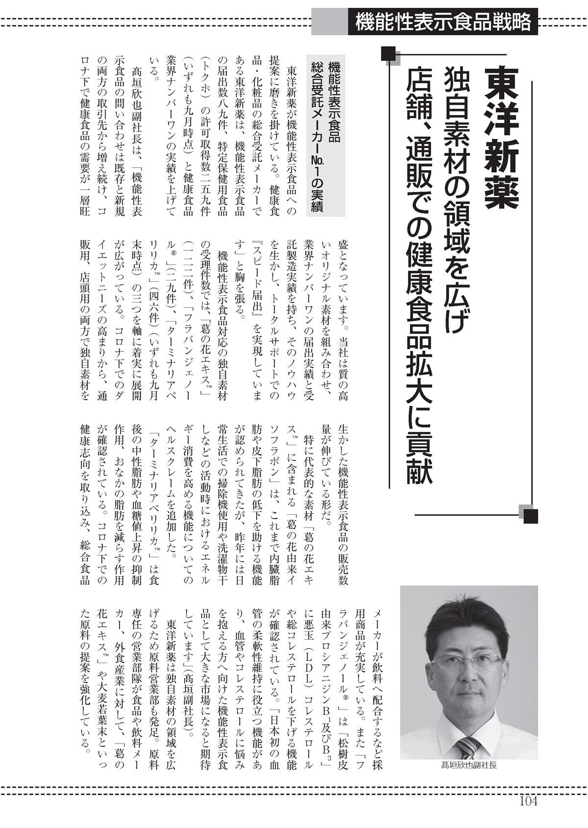 激流の「機能性表示食品戦略」で副社長取締役高垣のインタビューが掲載されました