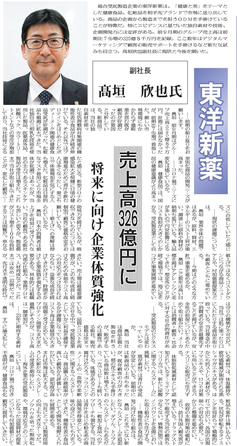 食品新聞に副社長取締役高垣のインタビューが掲載されました